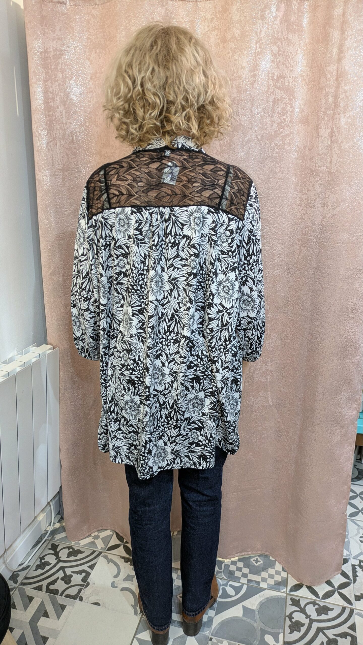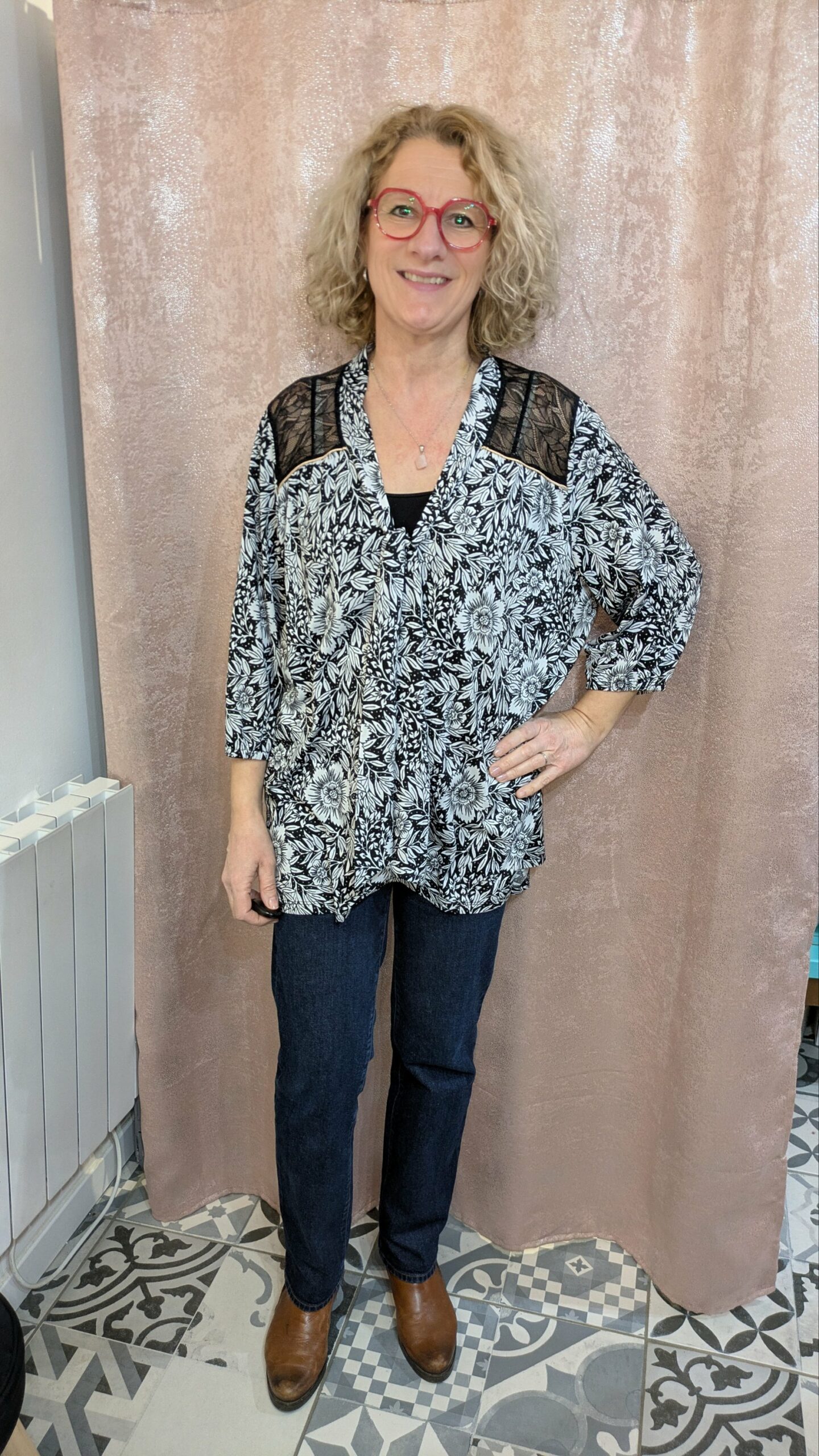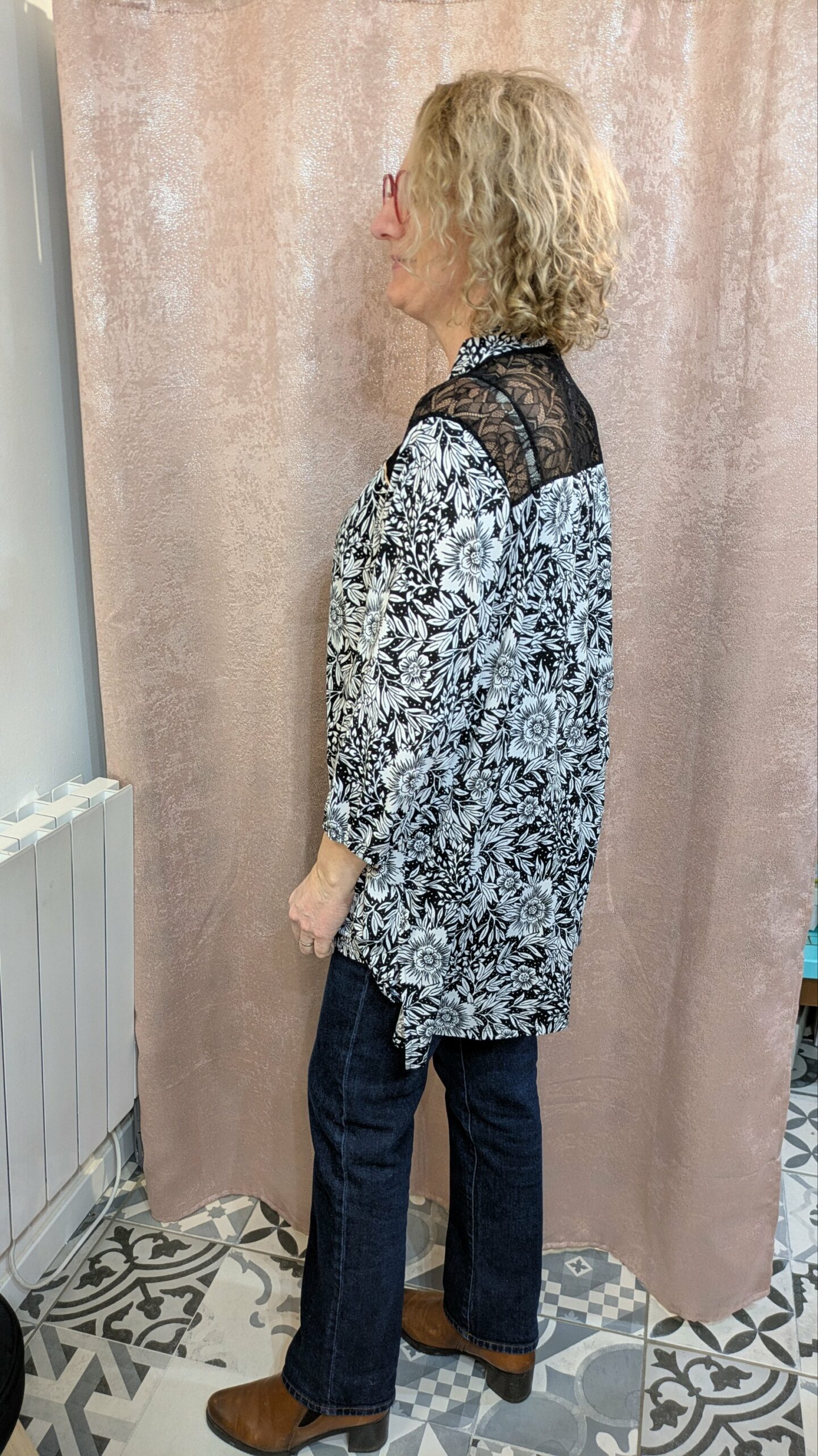 Cette blouse Modavista séduit par son motif floral graphique en noir et blanc, idéal pour un style à la fois chic et décontracté. Les manches trois-quarts et le col cravate ajoutent une touche féminine et élégante, tandis que les inserts en dentelle noire sur le buste apportent une originalité subtile. Parfaite pour le bureau ou une sortie entre amies, cette pièce s’adapte à toutes les occasions.