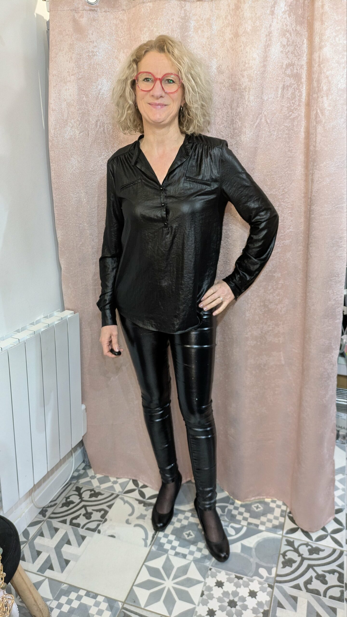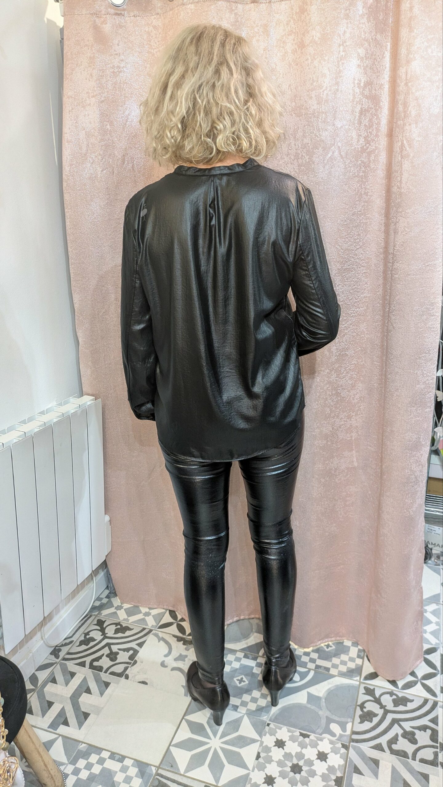 L’effet huile donne à cette blouse un aspect légèrement brillant, parfait pour capter la lumière et attirer les regards.