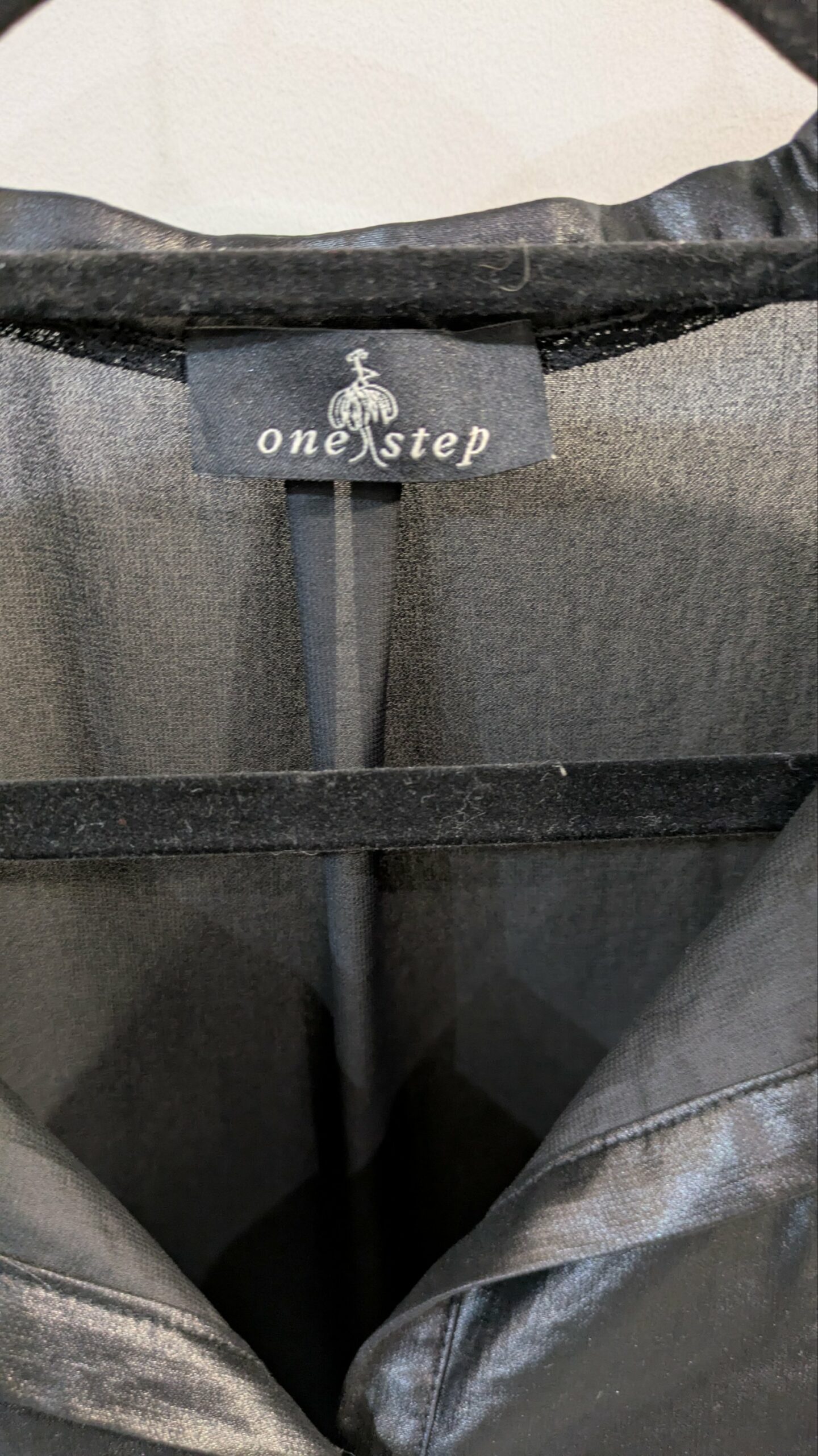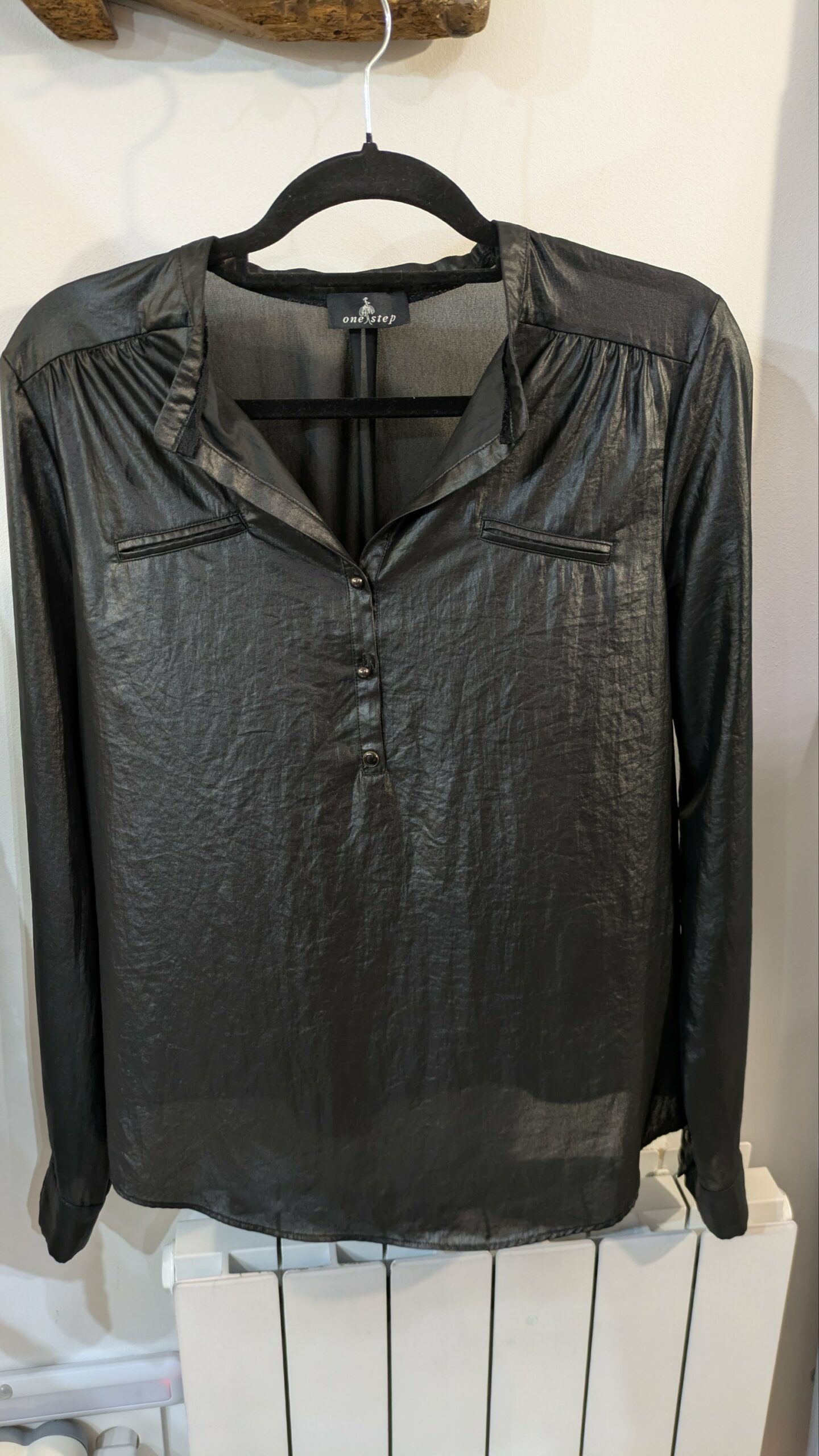 Cette blouse One Step séduit par son effet huile, un détail qui lui confère une allure à la fois chic et décontractée. De couleur noire, elle s’adapte facilement à toutes vos tenues, que ce soit pour le bureau ou une soirée. Son col rond et ses boutons pression sur les épaules ajoutent une touche originale, tandis que ses manches longues apportent une élégance intemporelle.