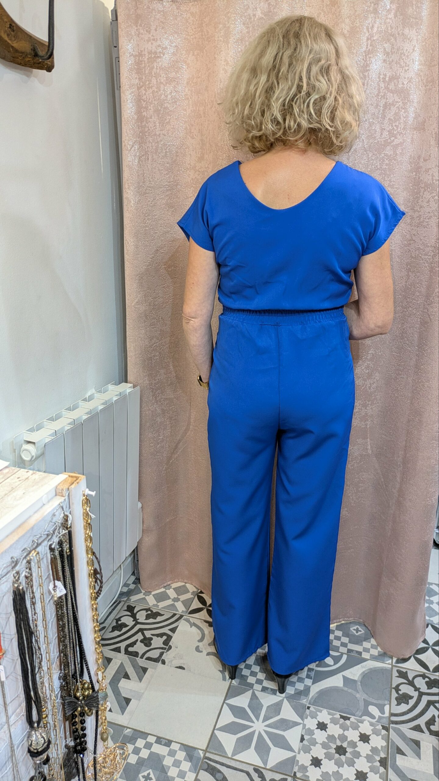 Cette combinaison bleue Rosy Days séduit par son style intemporel et sa coupe fluide. Avec sa couleur bleu profond et sa matière smockée à l’arrière, elle offre un confort optimal tout en mettant en valeur votre silhouette. Les deux poches latérales ajoutent une touche pratique, tandis que la longueur de 143 cm en fait une pièce polyvalente, idéale pour toutes les occasions.