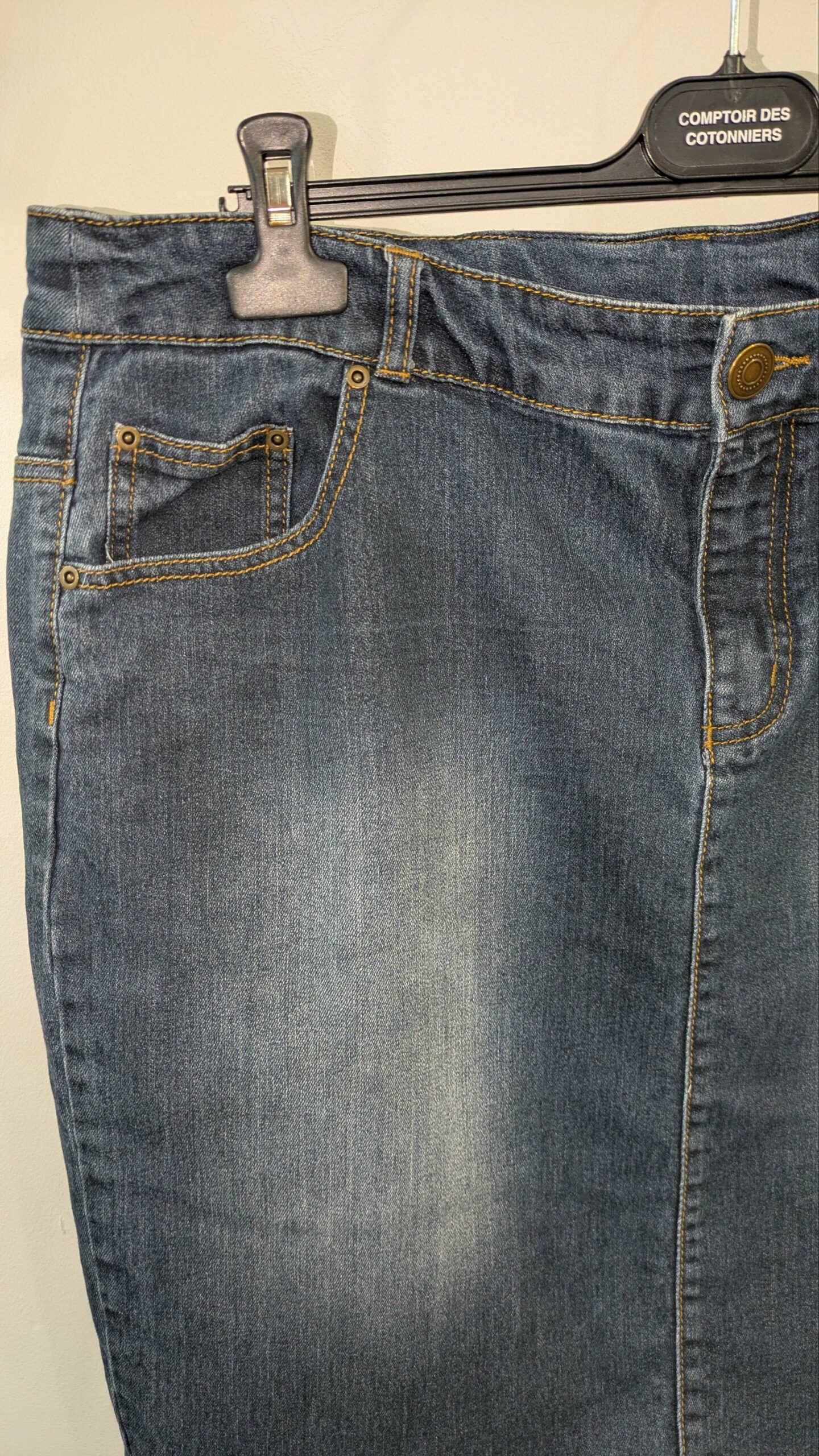 Cette jupe en jean Ikebana séduit par son bleu foncé profond et sa coupe droite, idéale pour toutes les morphologies. Elastiques réglables à la taille. Fabriquée dans un denim de qualité, elle offre un rendu à la fois résistant et souple. Ses deux poches avant ajoutent une touche pratique, tandis que ses finitions soignées en font une pièce polyvalente, parfaite pour le quotidien comme pour les sorties.
