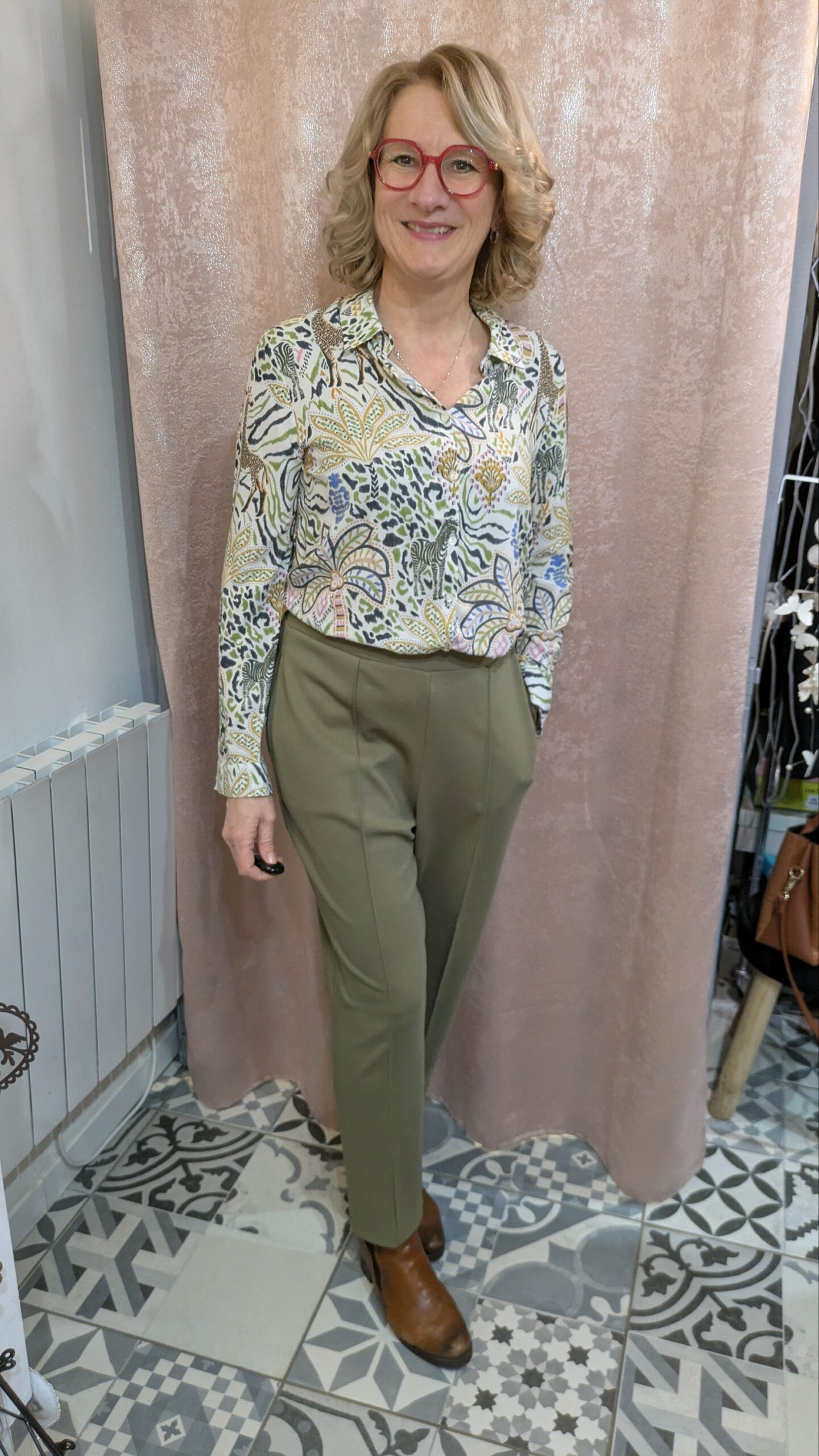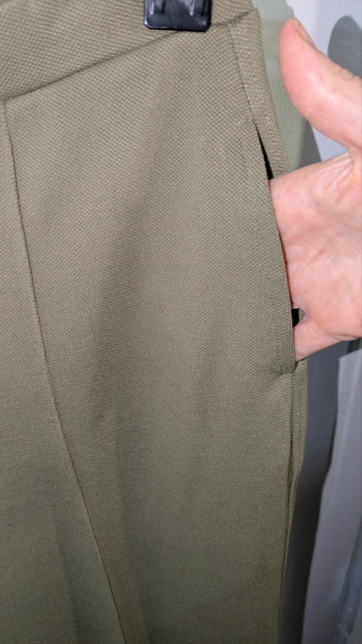 Ce pantalon kaki de la marque Mango allie simplicité et élégance. Sa couleur kaki intemporelle et sa coupe en font une pièce polyvalente, parfaite pour le bureau comme pour les sorties décontractées. Le tissu stretch offre un confort optimal, tandis que les deux poches avant ajoutent une touche pratique. Le mannequin sur la photo mesure 1,66 m.