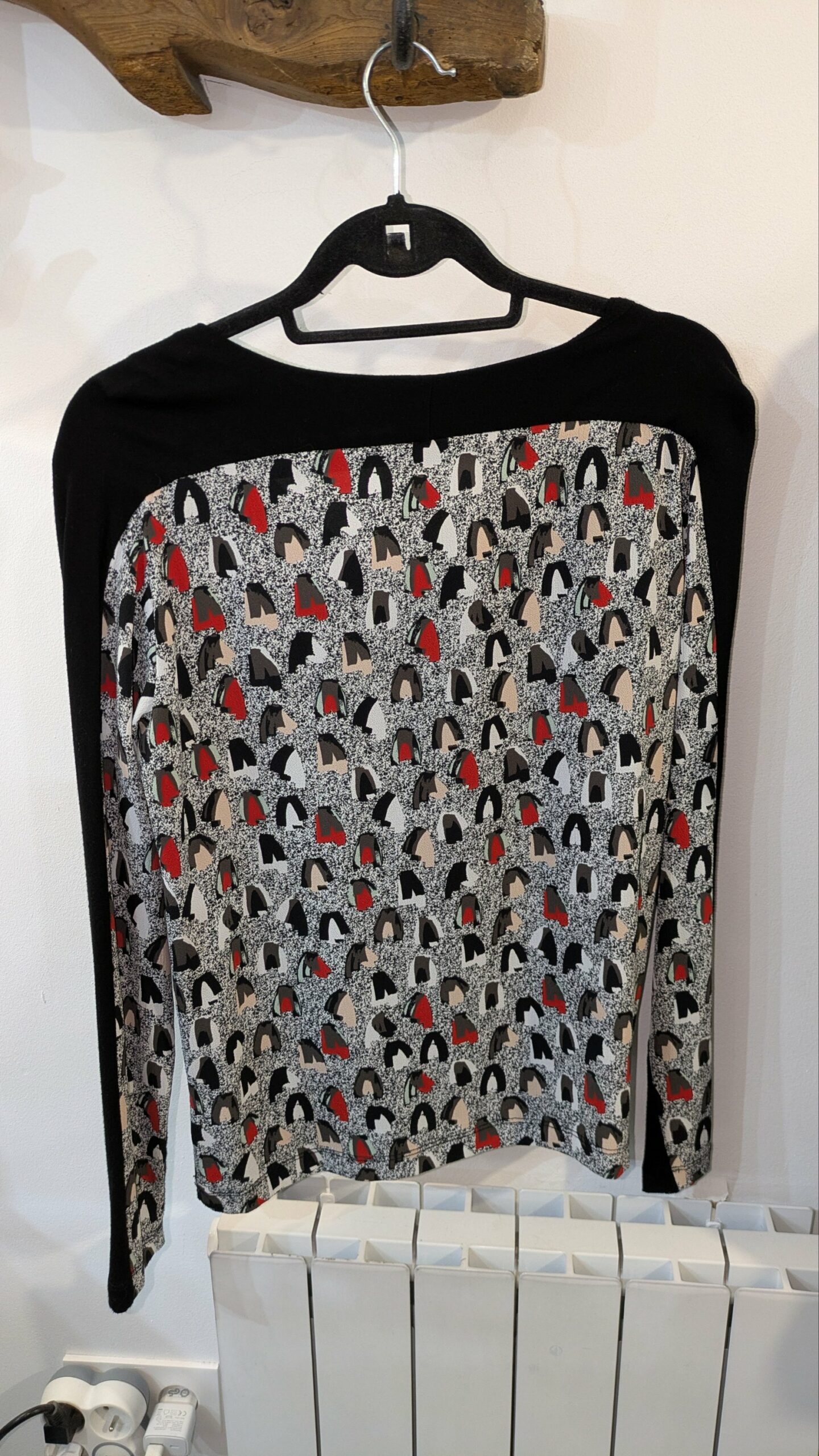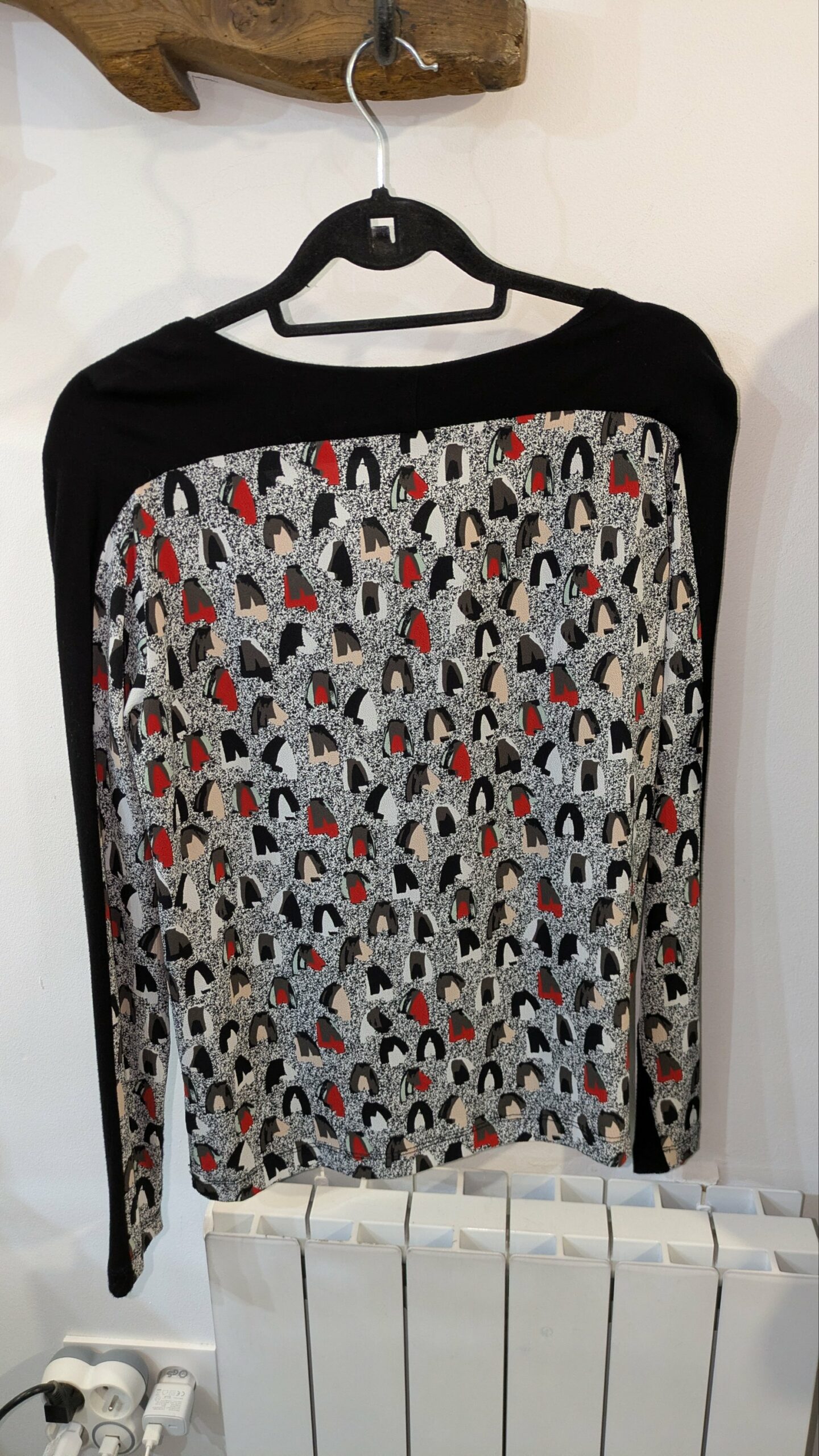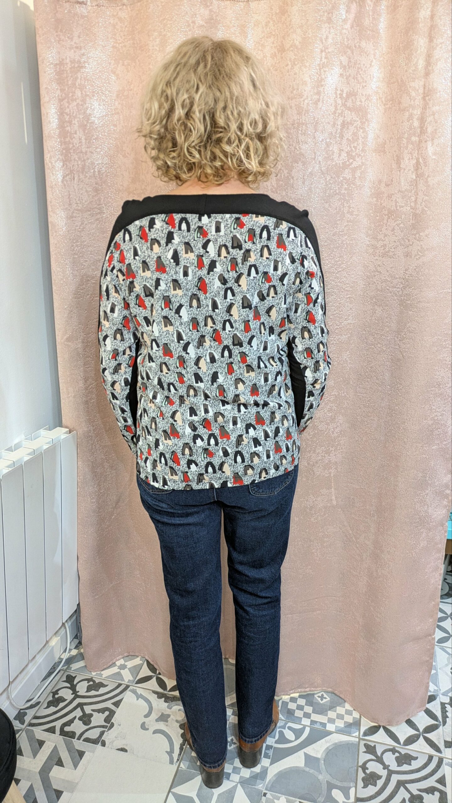 Ce pull Cop Copine se distingue par son imprimé graphique audacieux, mêlant des motifs noirs et rouges sur un fond gris clair. Le design original et contemporain en fait une pièce unique pour les amateurs de vêtements qui sortent de l’ordinaire. Le tissu, composé de viscose et polyester, est doux et fluide, garantissant un confort optimal tout au long de la journée.