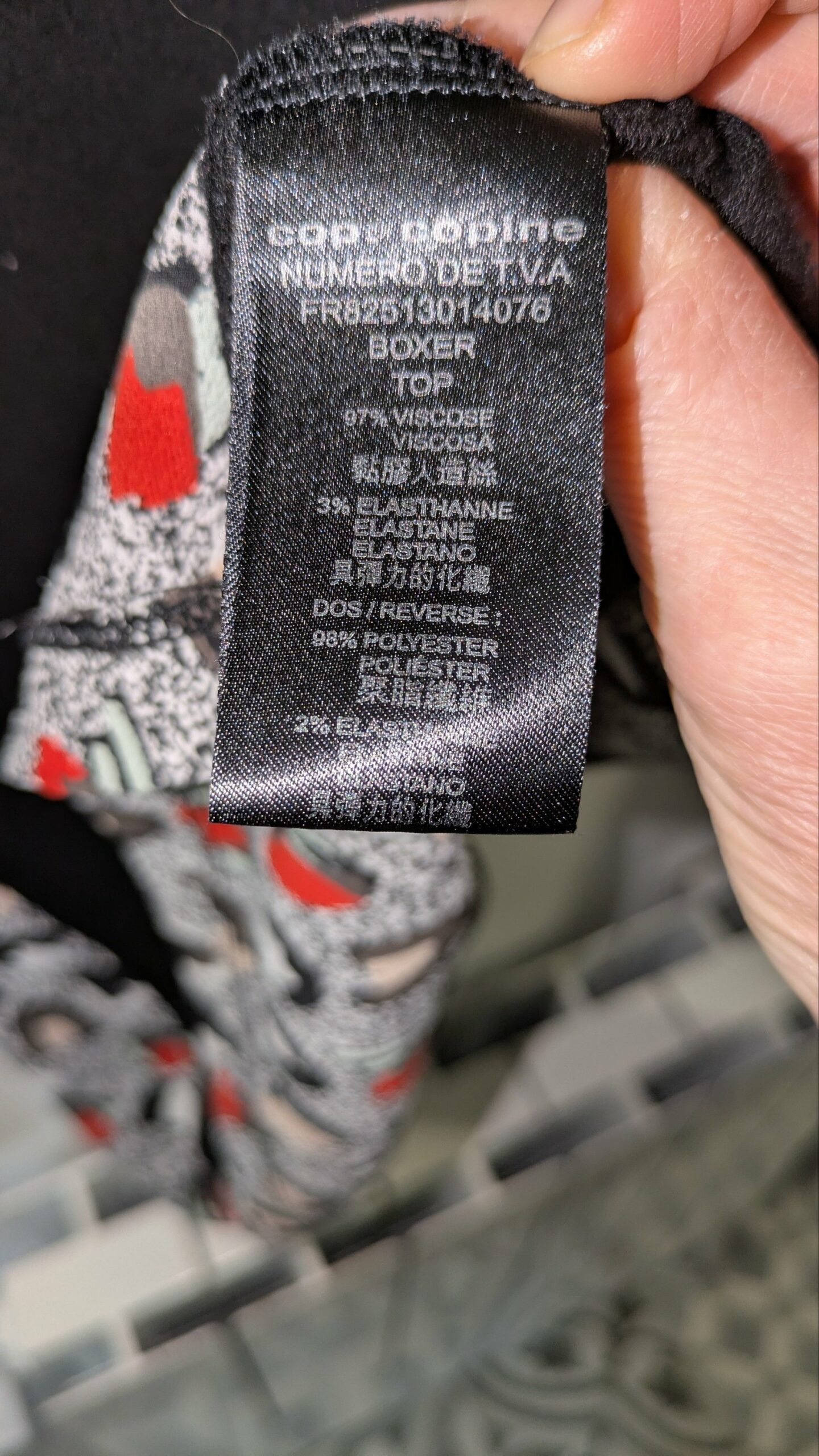 Composition : 97% viscose, 3% élasthanne (dos/revers : 98% polyester, 2% élasthanne)