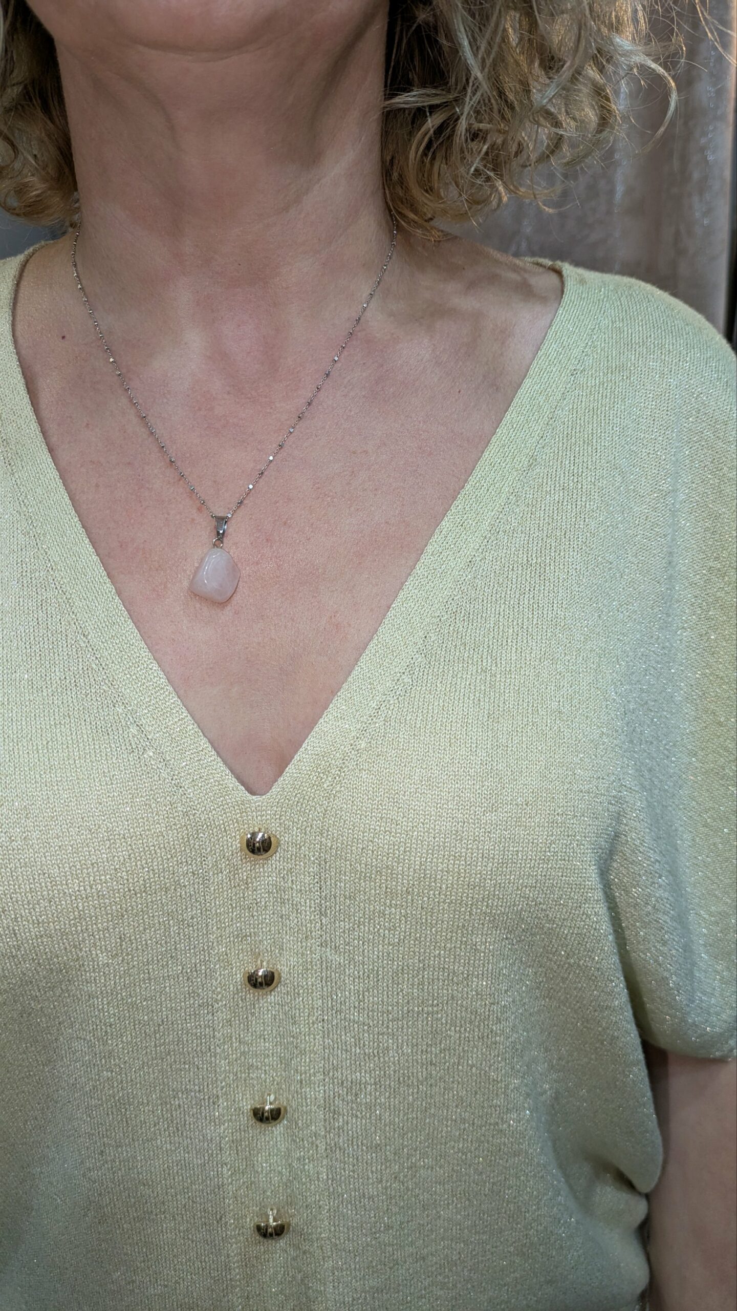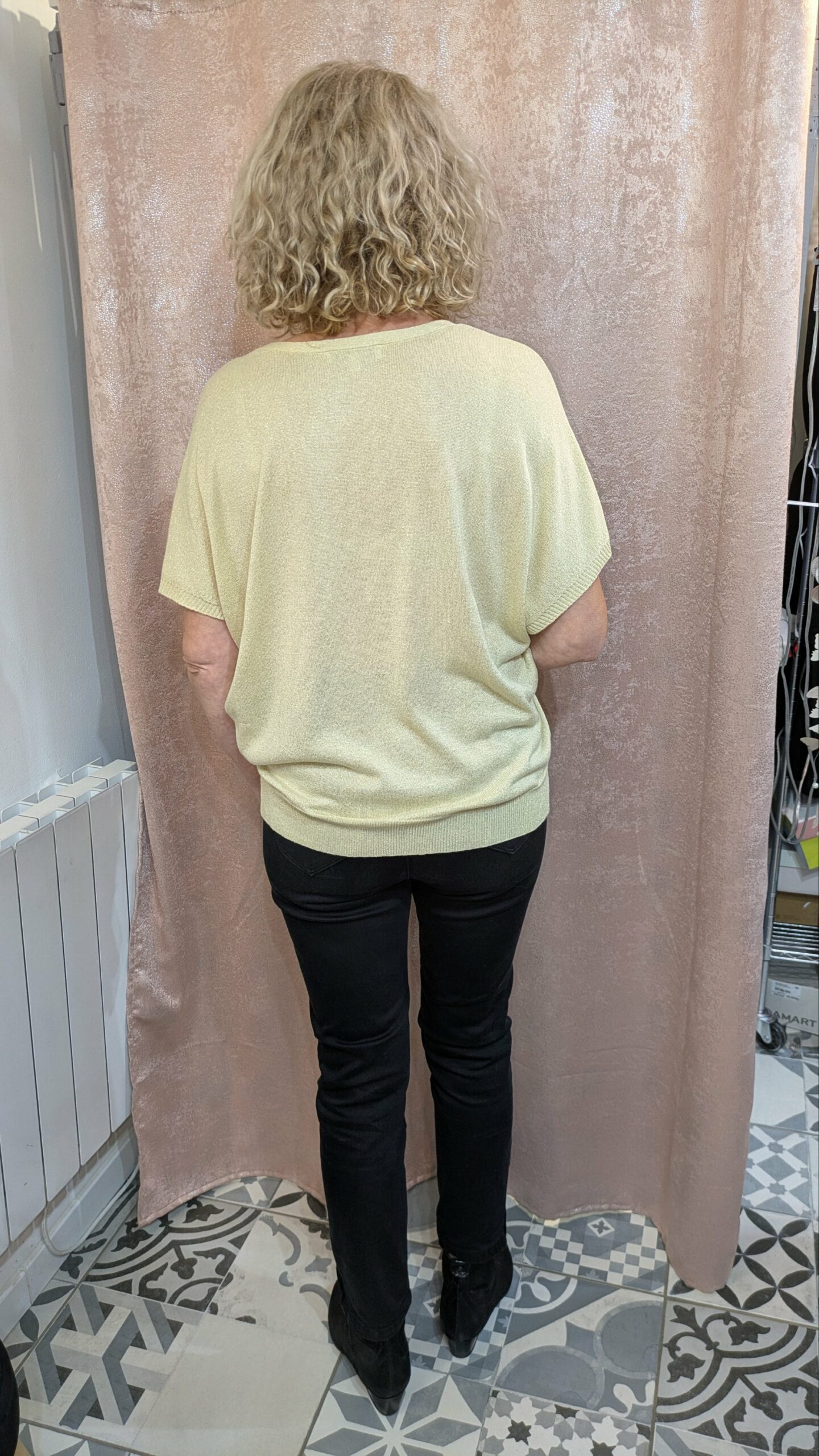 Ce pull est léger et légèrement brillant grâce à ses fils métallisés, ce qui lui donne un effet subtil et sophistiqué.