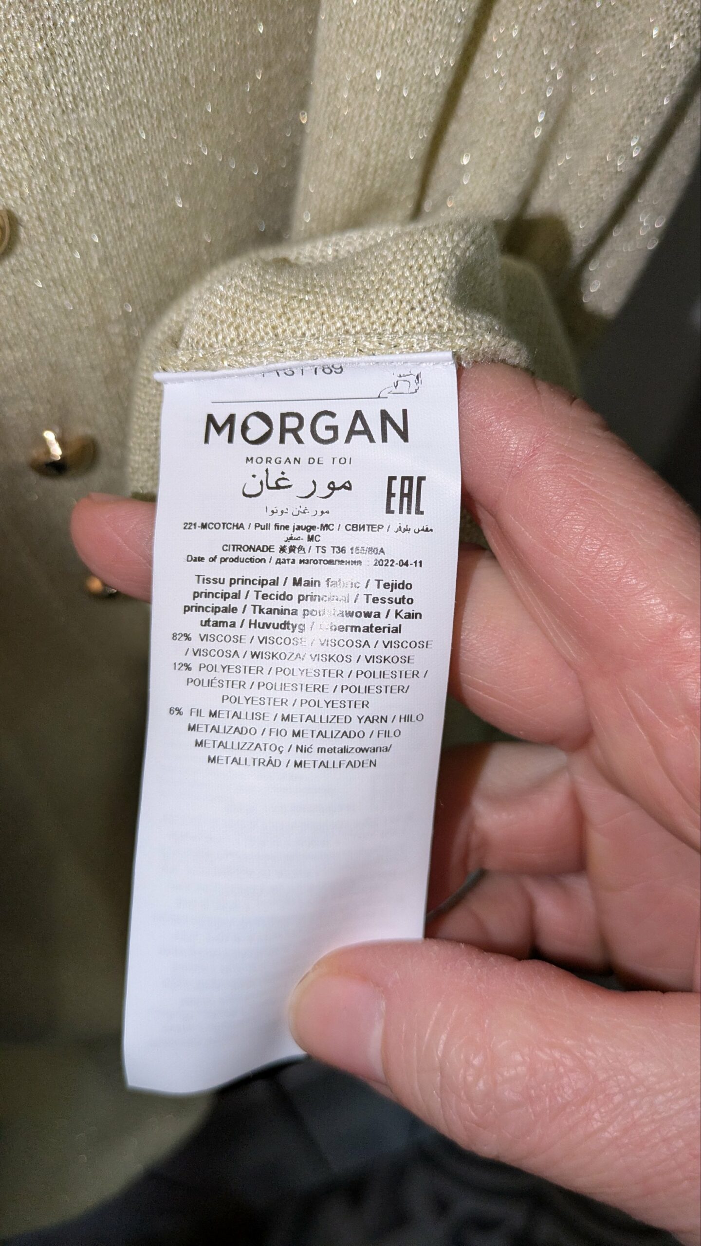 Composition : 82% viscose, 12% polyester, 6% métallisé