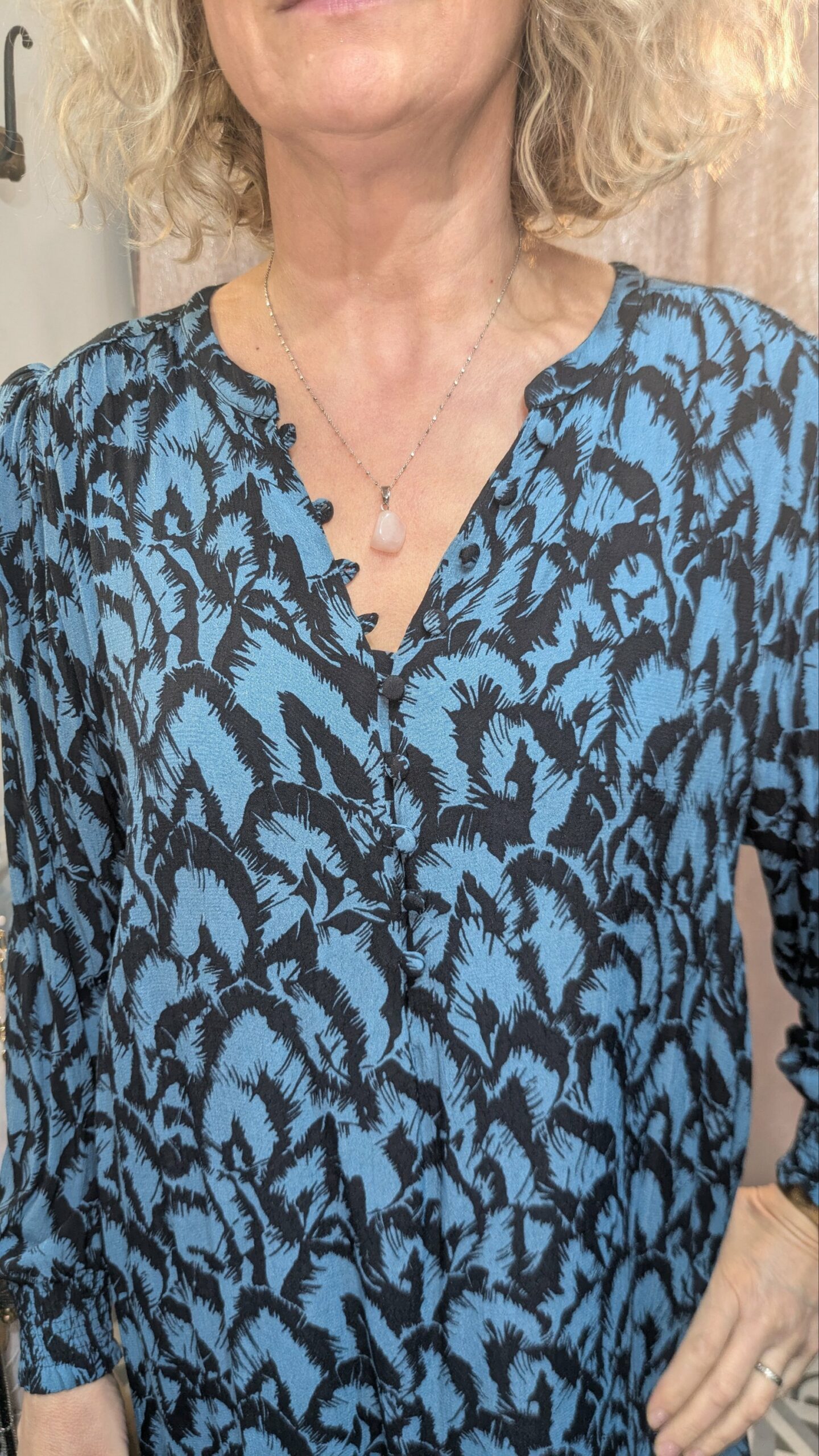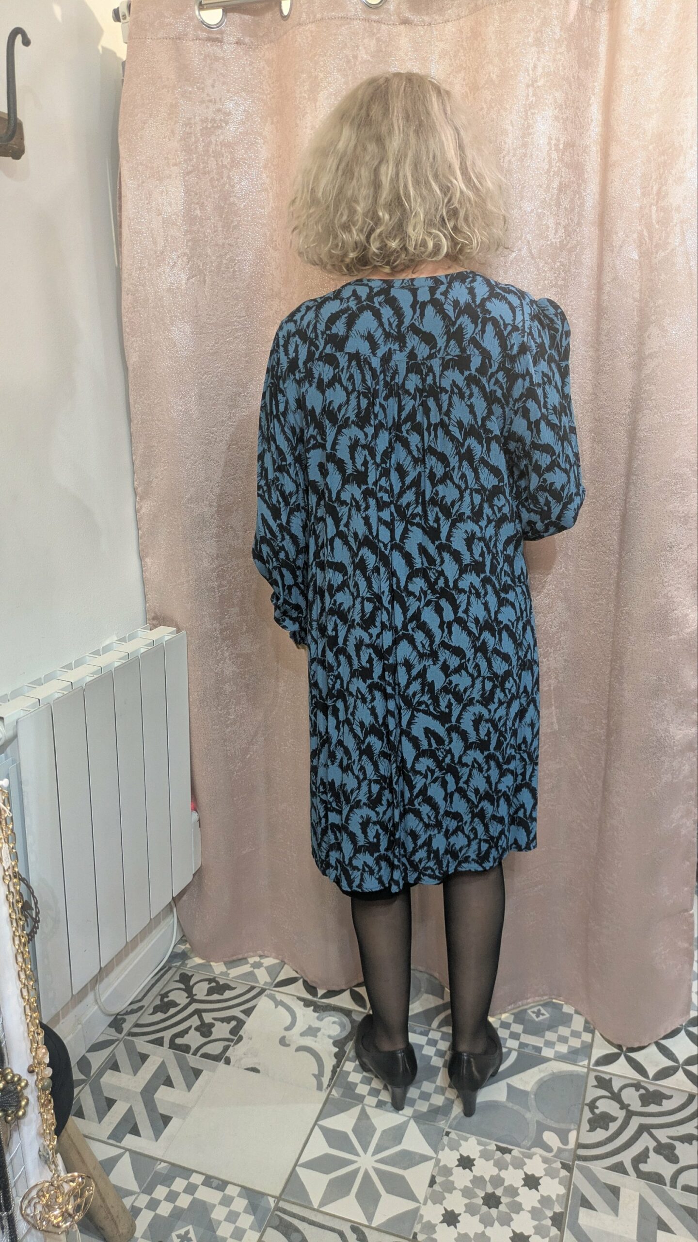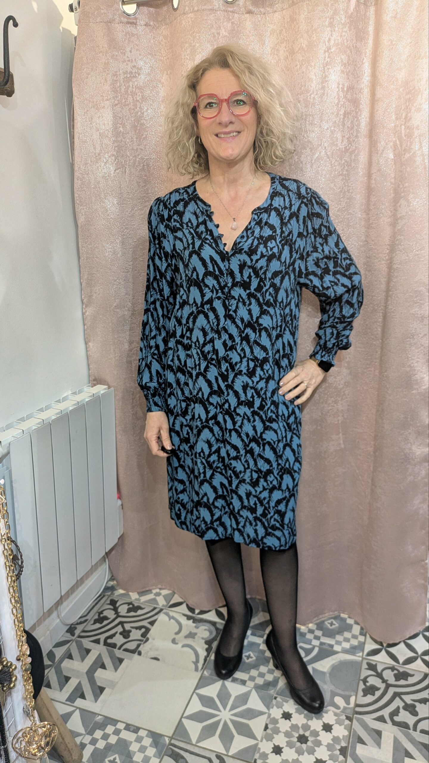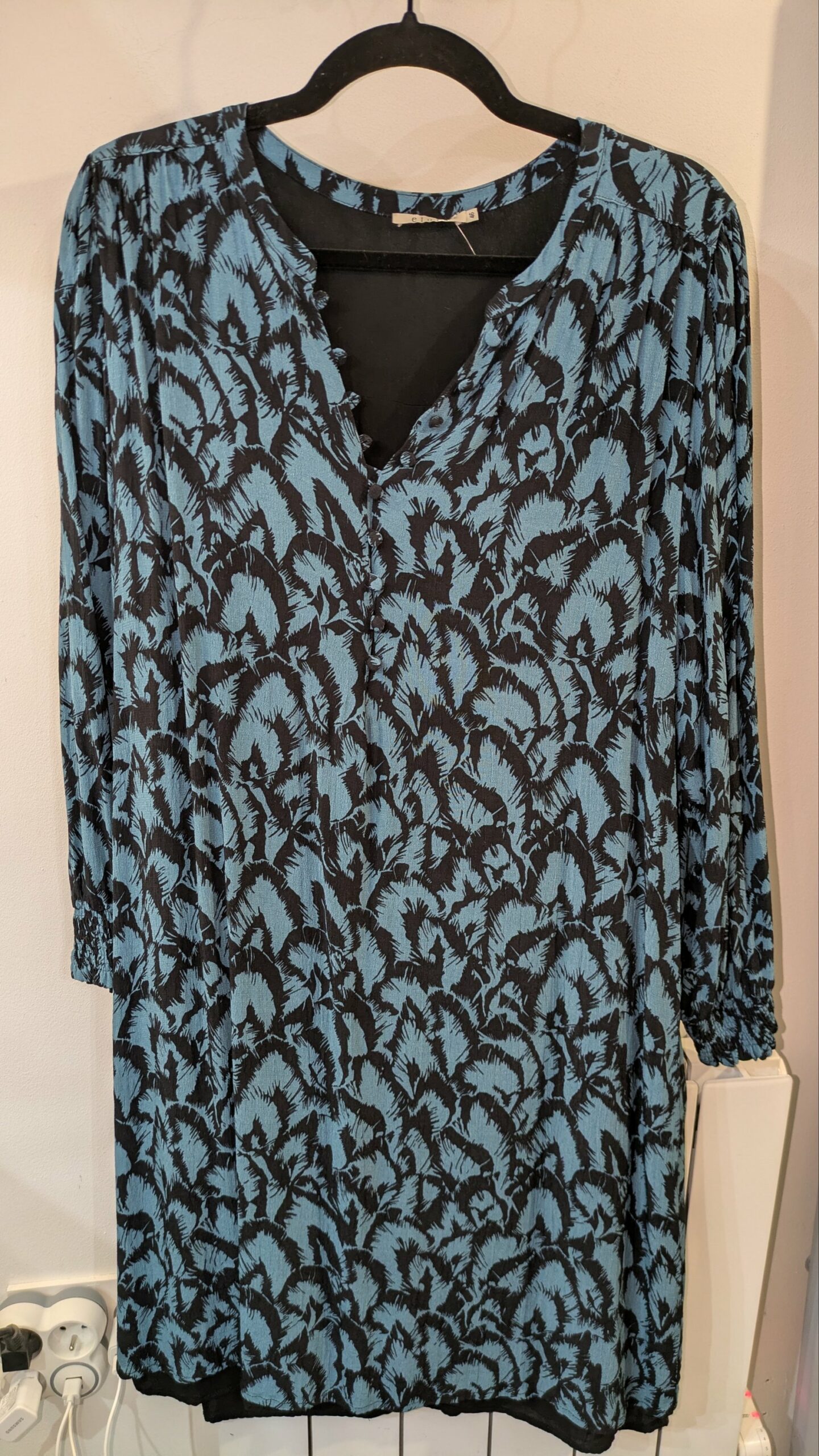 Cette robe Elora, taille 46, séduit par son motif plume bleu nuit et noir, intemporel et raffiné. En viscose, elle offre une douceur et une fluidité idéales pour un port agréable. La coupe droite et les manches longues légèrement resserrées apportent une touche d’élégance, tandis que la doublure garantit un tombant parfait et un confort optimal.