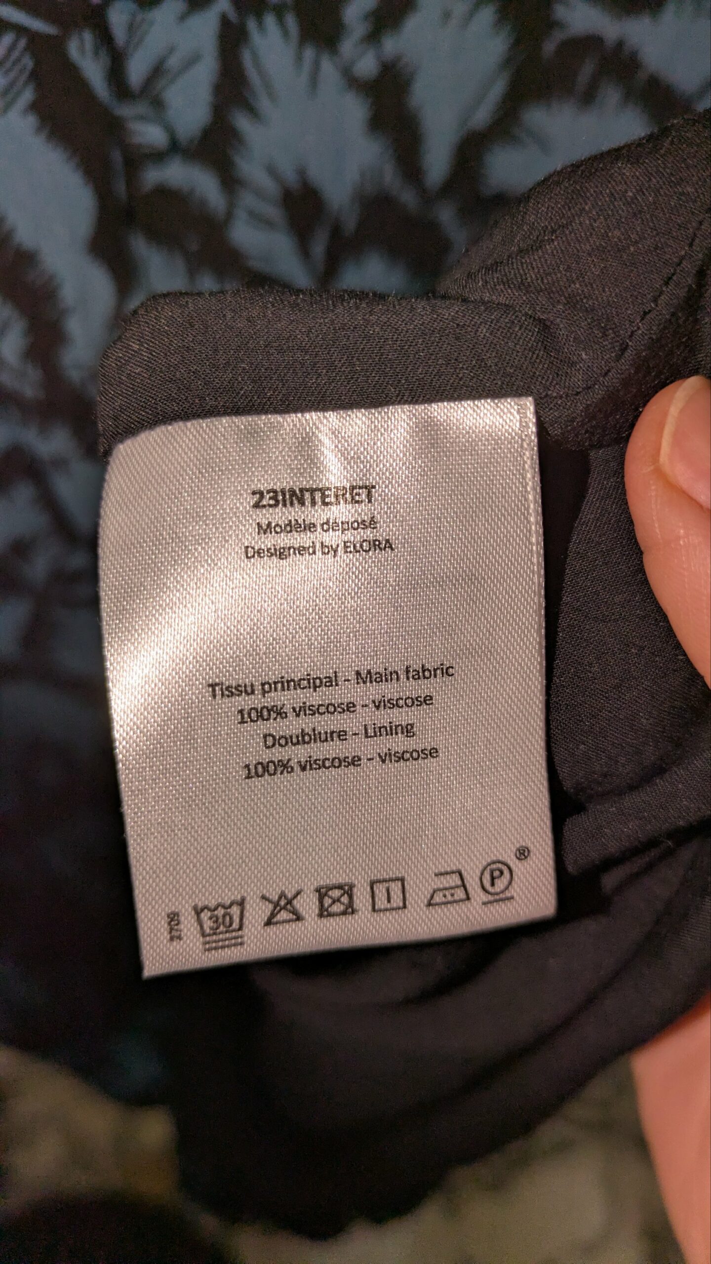 Composition : 100 % viscose (tissu principal et doublure)