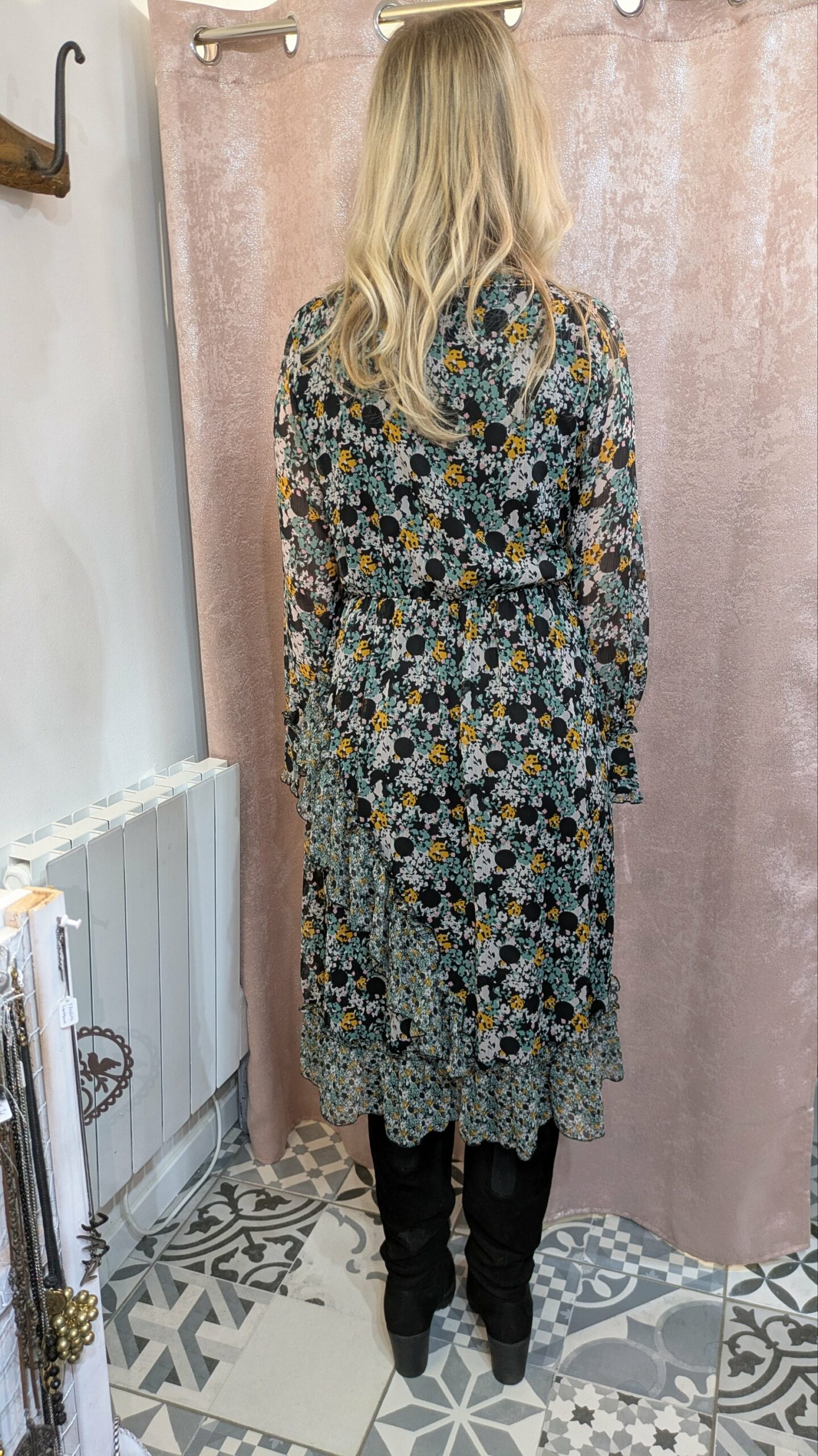 À porter avec des sandales à talons et une petite pochette pour une soirée chic, ou des bottines pour un look bohème. Le mannequin sur la photo mesure 1, 70 m.