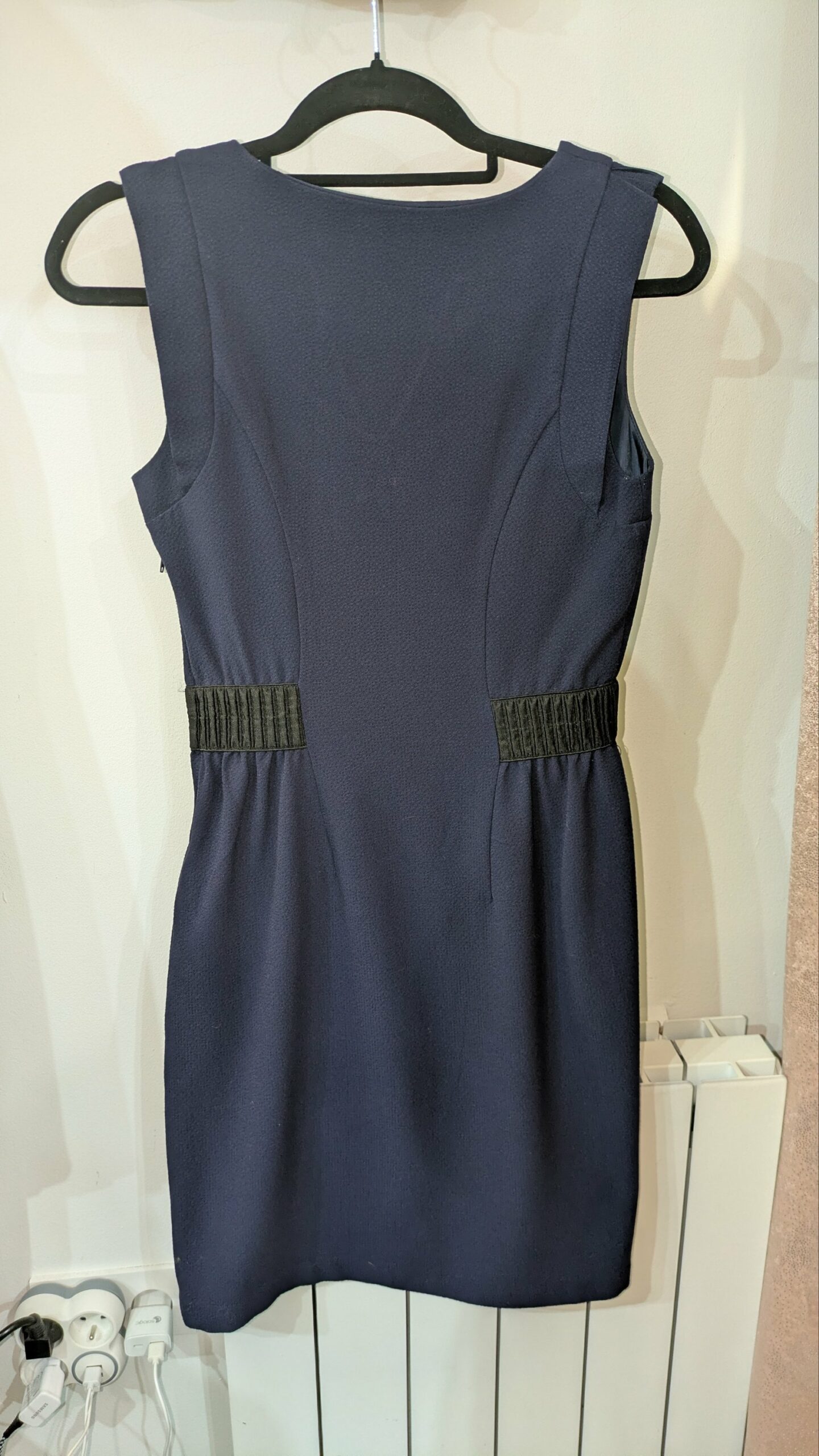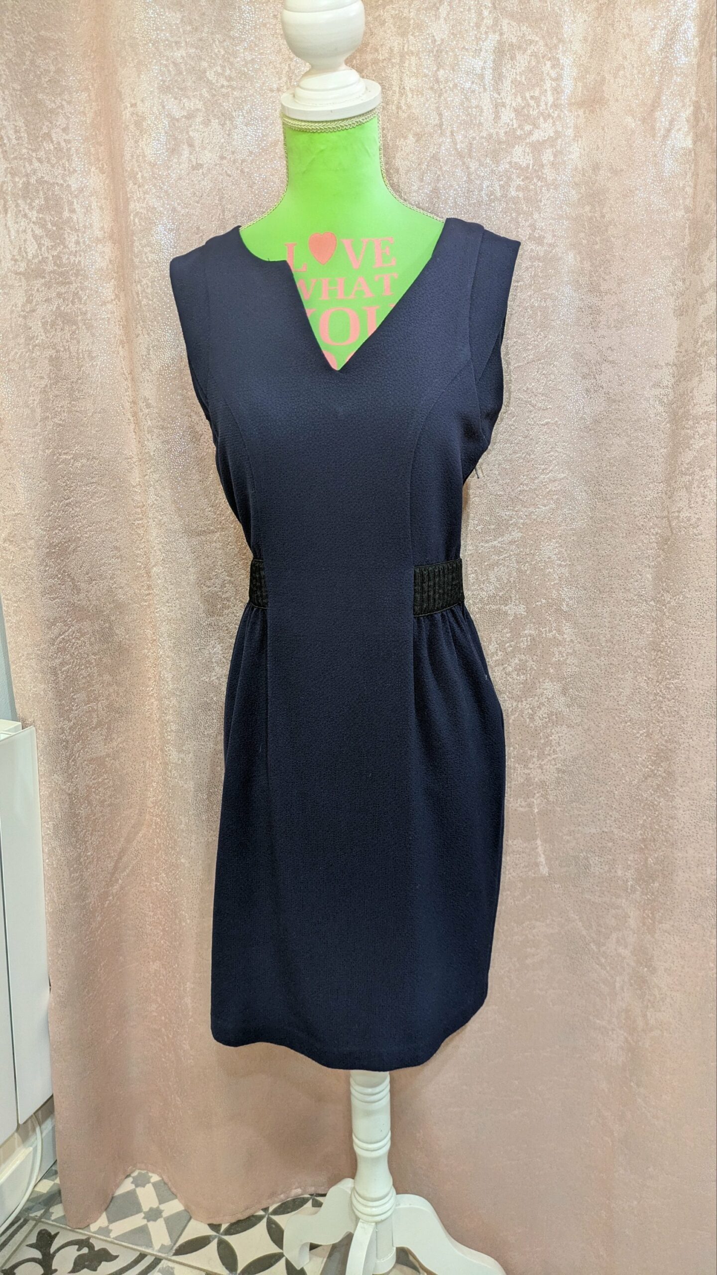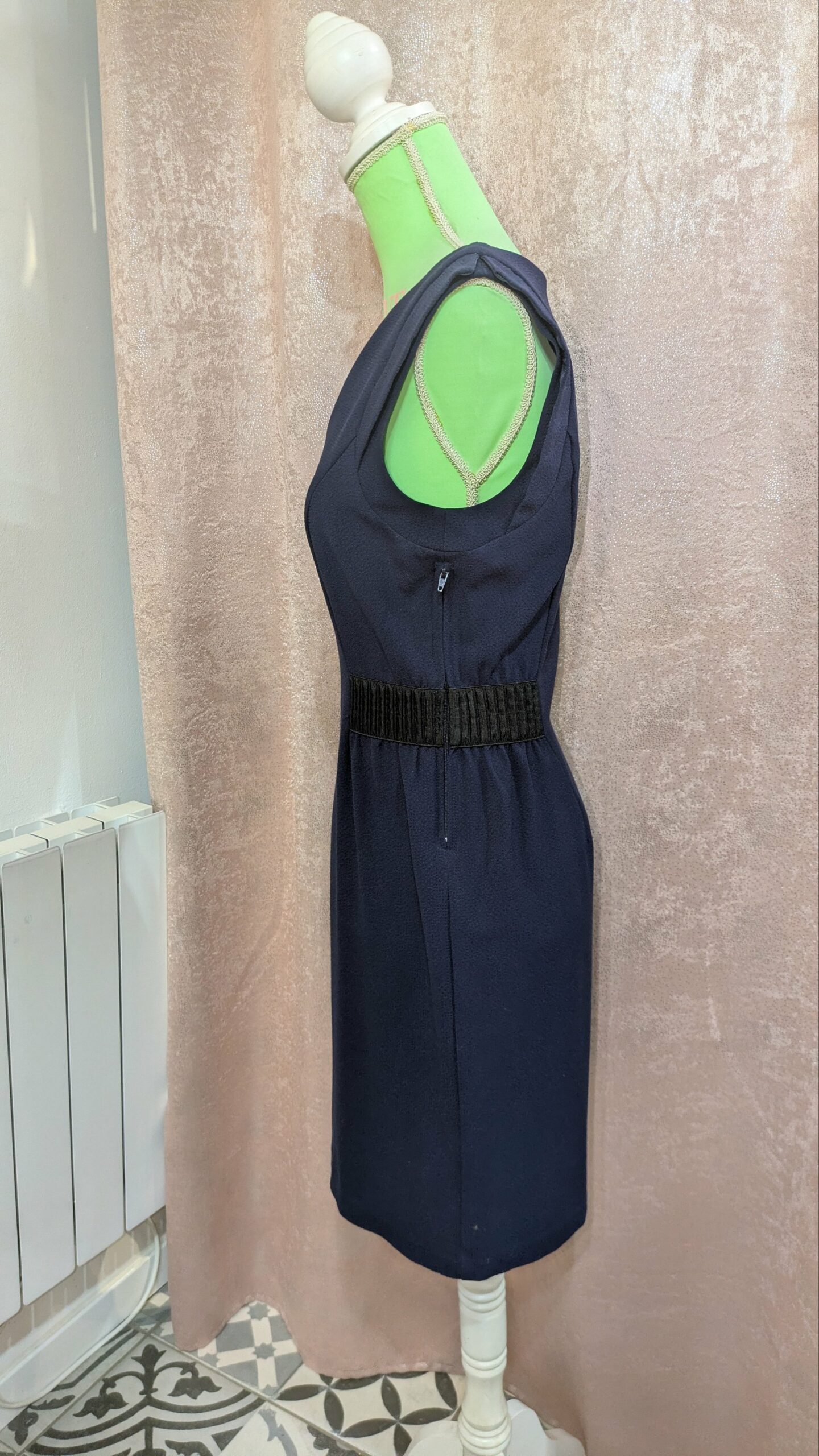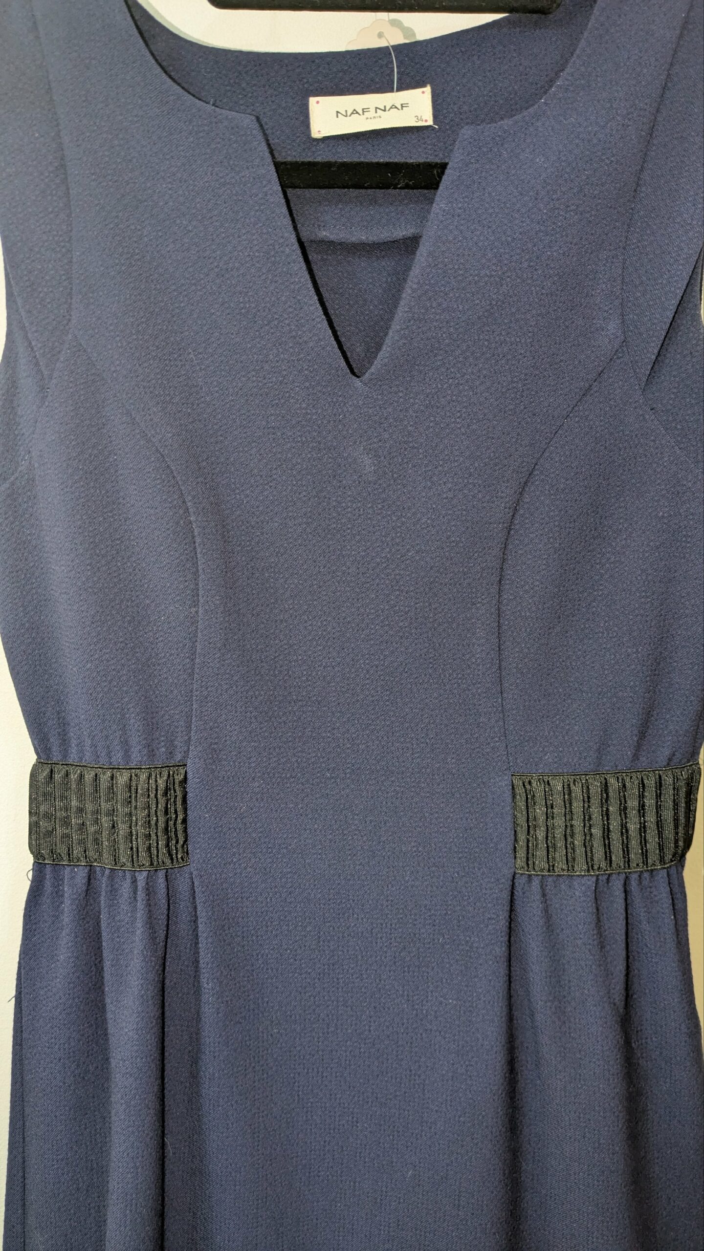Cette robe Naf Naf, en marine et noir, séduit par son élégance sobre et sa coupe structurée. La partie supérieure marine, , se marie parfaitement avec la ceinture en tissu noir qui souligne la taille. La apporte une touche féminine et fluide, idéale pour les occasions habillées ou un .