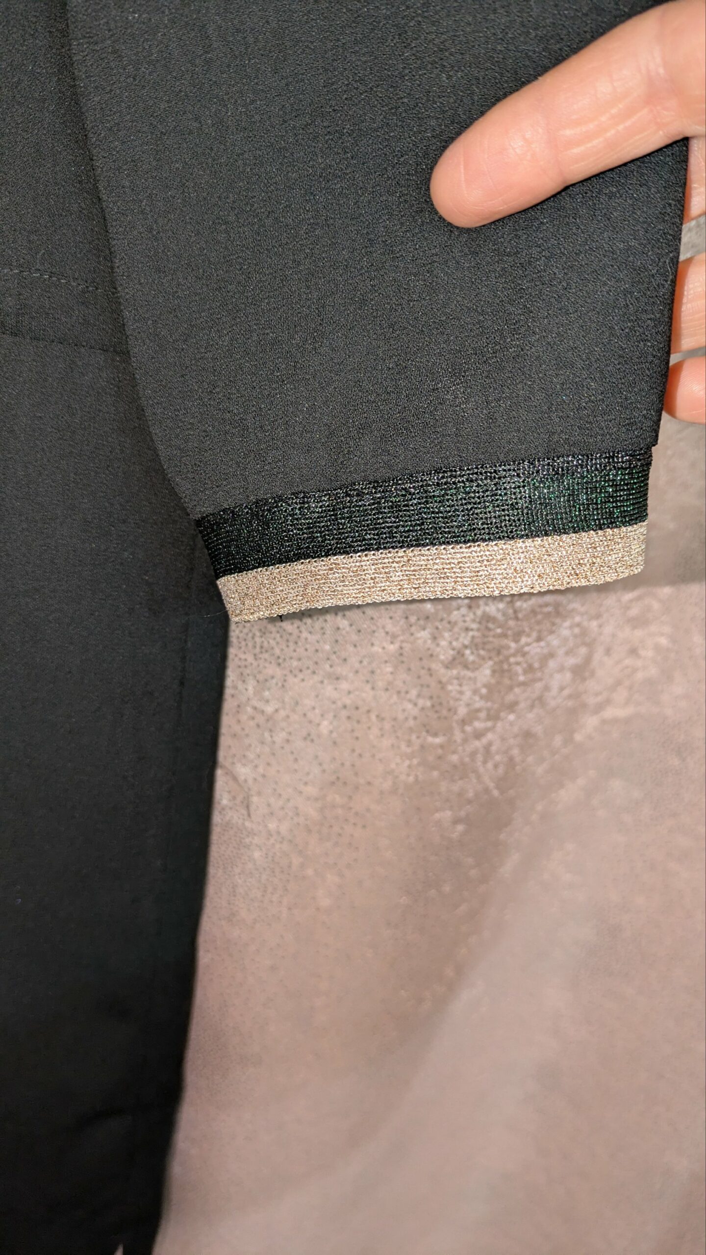 - Particularités : Fendu sur les côtés, finitions scintillantes sur le col et les poignets