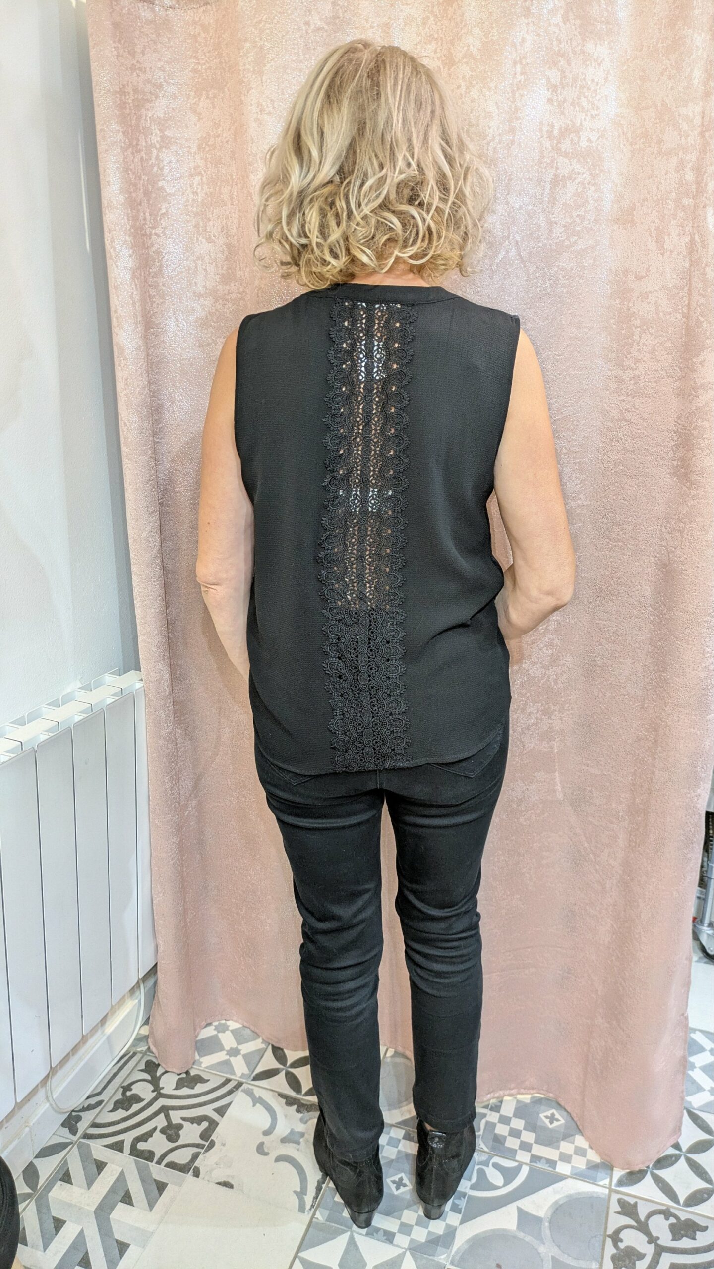 La dentelle sur le buste apporte une touche délicate et féminine à ce top intemporel.